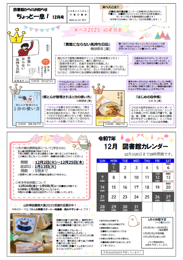 過去1年分のちょっと⼀息!を公開しています。(PDFファイルが開きます)